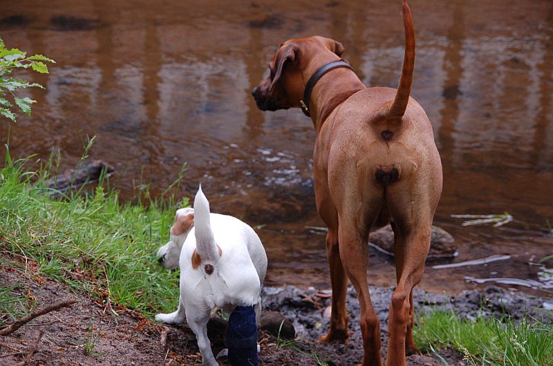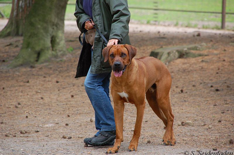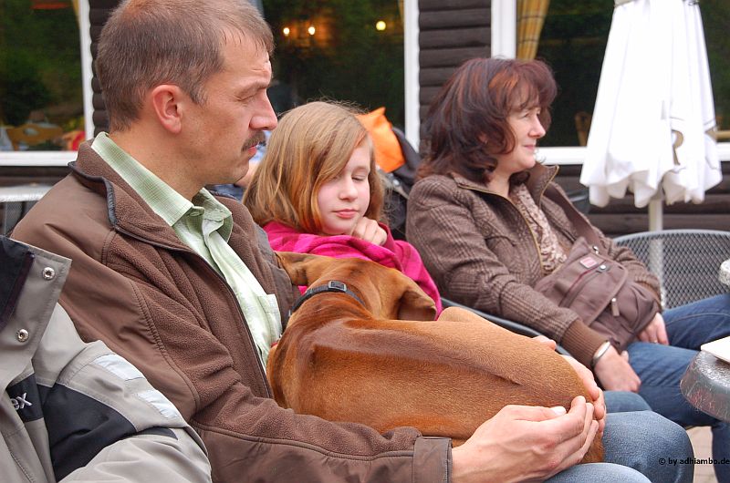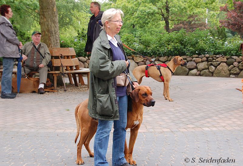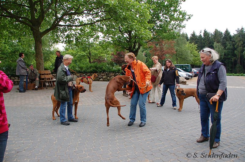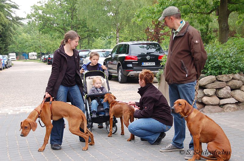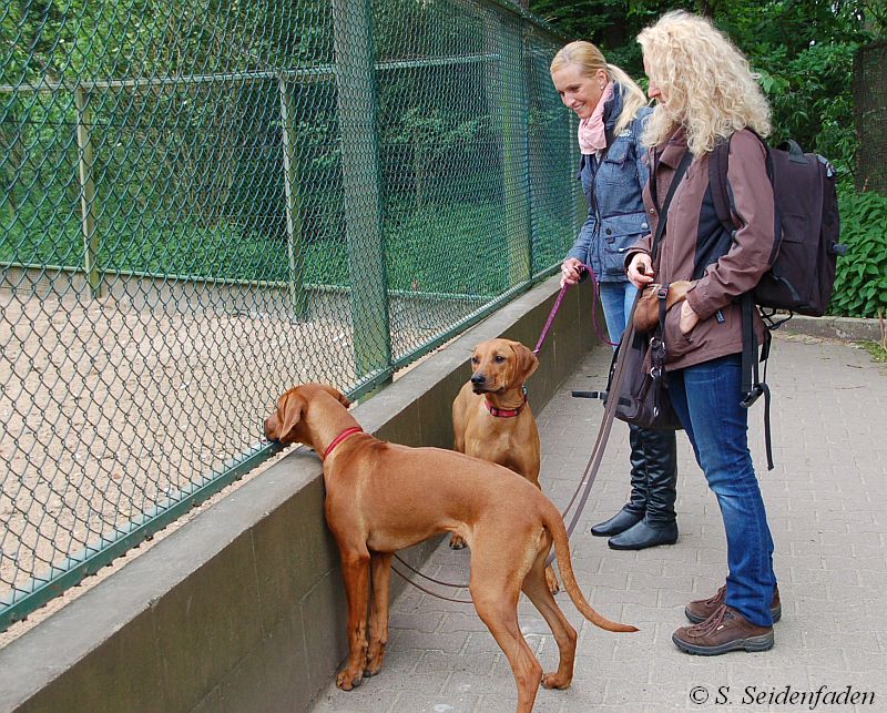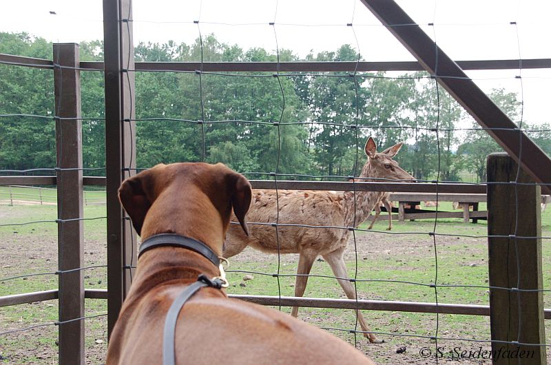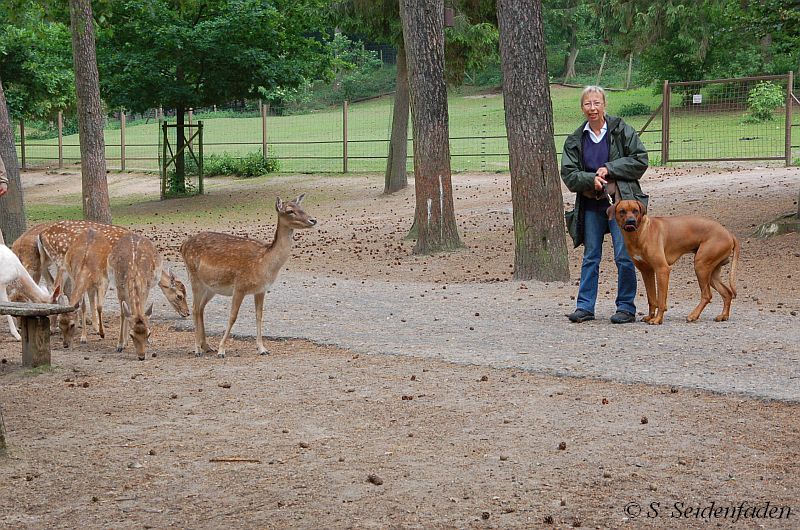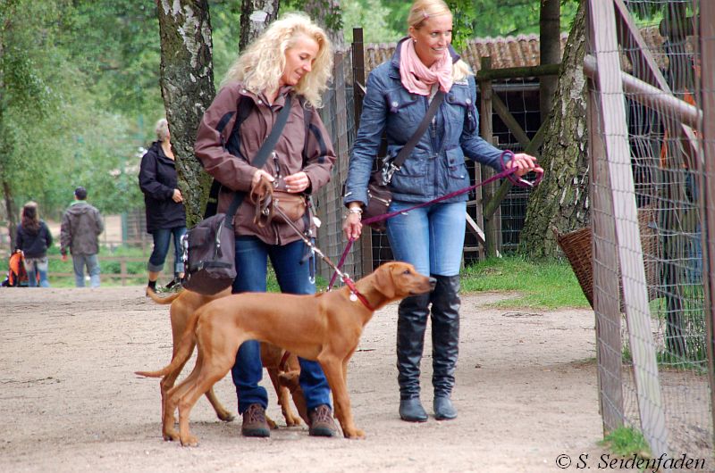 Ende Mai haben wir am Junghundespaziergang durch den Wildpark Ninstedt in der Lüneburger Heide teilgenommen. Tiger und ich sind mit Senta und Chickie bereits am Freitag angereist und haben uns ein schönes Wochenende im Hotel Sudermühlen gegönnt. Unter anderem waren wir in Luhmühlen, haben bei Reitsport Michaelis eingekauft und einen ausgedehnten Spaziergang über die Vielseitigkeitsstrecken dort gemacht. Nach dem ereignisreichen Spaziergang durch den Wildpark mit anschließendem Mahl im Hotel fuhren wir am Sonntag noch zum Ringtraining nach Bomlitz, wo sich Senta wunderbar präsentierte. Ich bin sehr stolz auf mein kleines Mädchen.