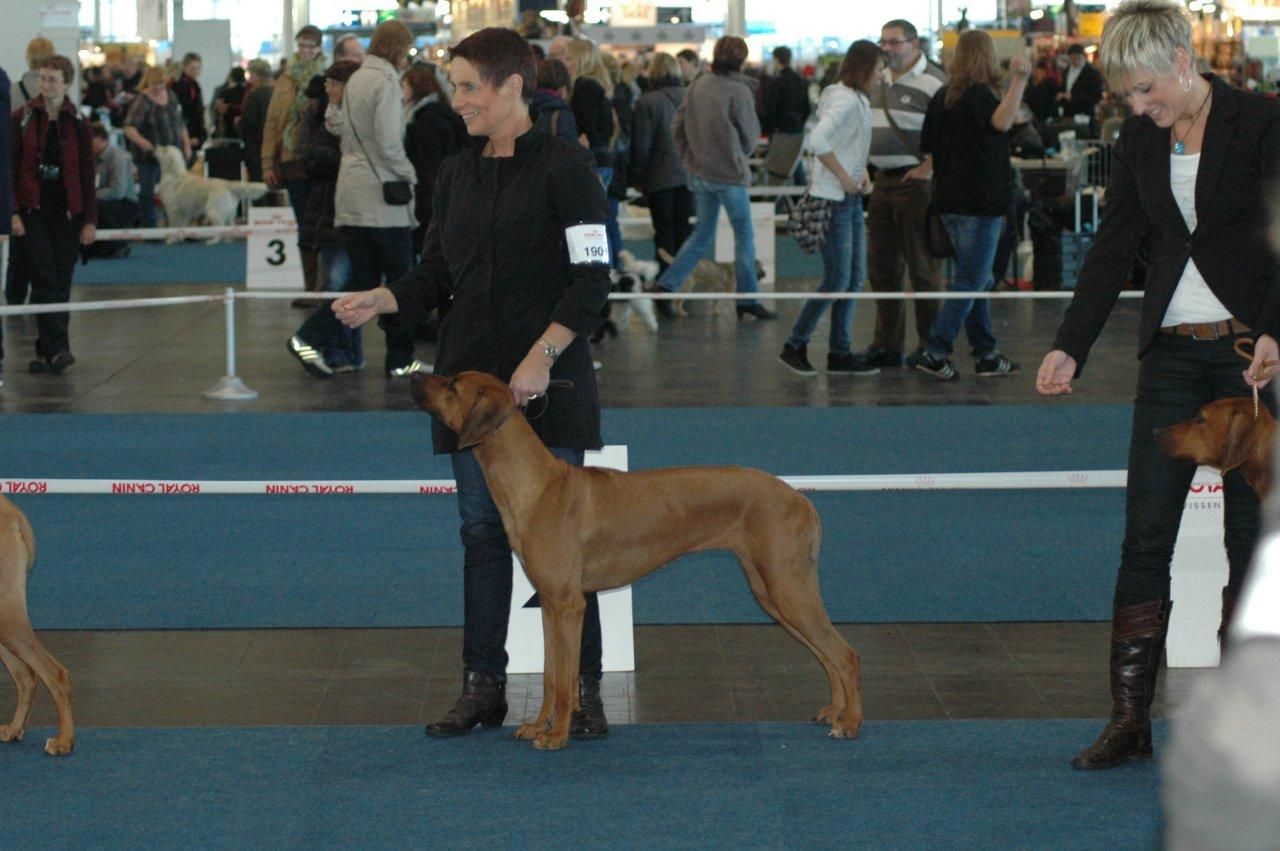 Am Wochenende war ich mit Senta bei der Internationalen Ausstellung in Hannover. Senta erlief sich bei riesengroßer Konkurrenz in der Zwischenklasse ein V mit einem tollen Richterbericht. Frau Bregenzer gefiel vor allem Sentas wunderschöner Kopf, ihre Bewegungsqualität und die Typreinheit. Lediglich einen momentan geringen Mangel an Substanz erwähnte sie. Es war ein wunderschöner Tag, bei dem ich nicht nur viele alte Freunde wiedergetroffen habe, sondern auch nette neue Leute kennenlernte. Vielen Dank an Heide und Nicole, die mir die Ausstellungsbilder geschickt haben. Und an Poul und Netti jensen, die mir ebenfalls Bilder von Senta und ihrem wunderschönen Bakari schickten.