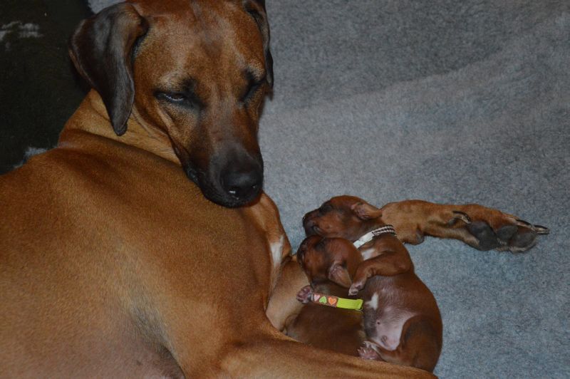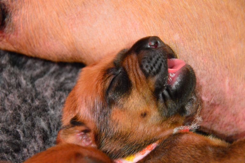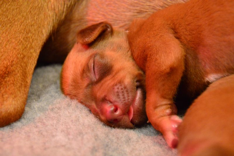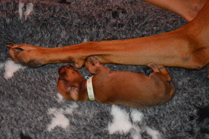 Die Avondales sind jetzt eine Woche alt und machen sich prächtig. Zwei haben ihr Geburtsgewicht verdoppelt, so wie es sein soll. Vier haben es sogar mehr als verdoppelt. Sie haben sich zu richtigen kleinen Piranhas entwickelt. Sie tragen jetzt auch schon ihre Halsbändchen, die Susanne Heckelsmüller für sie genäht hat. Noch ein paar Tage, dann werden sie die Äuglein öffnen und die Welt erkunden.