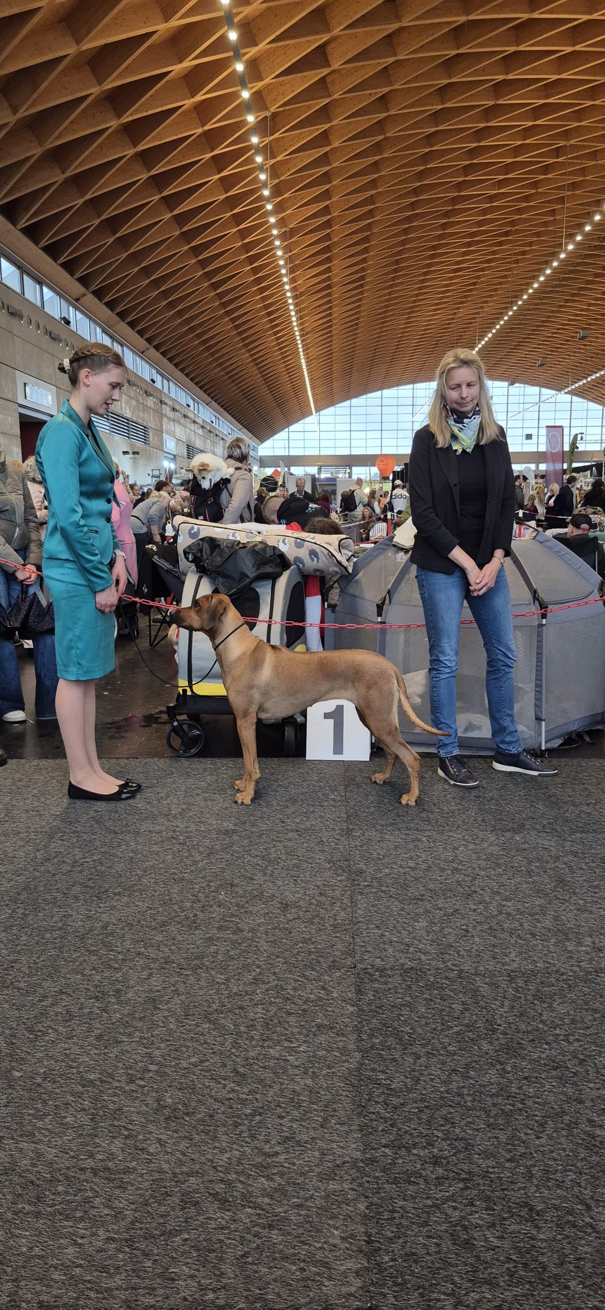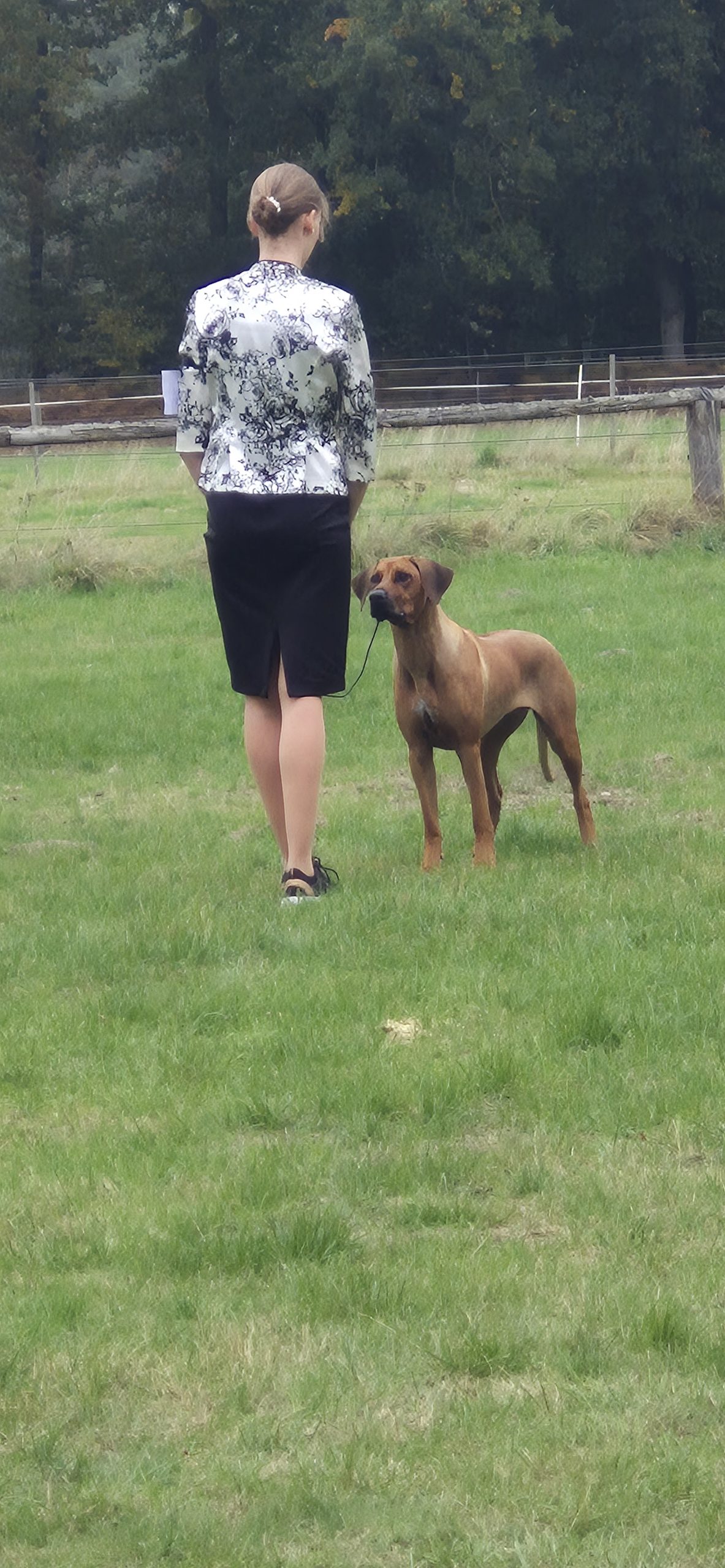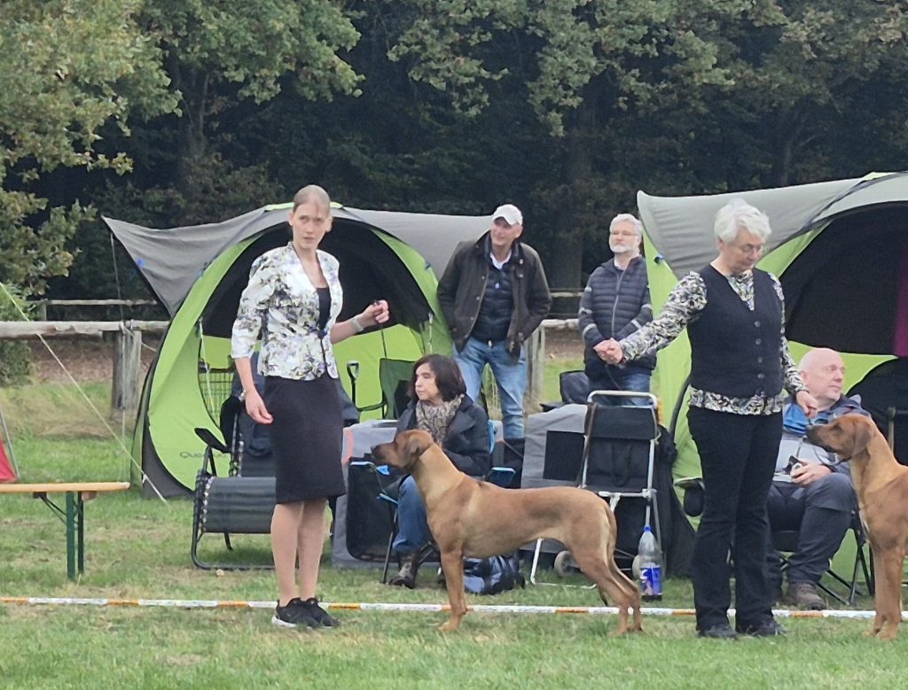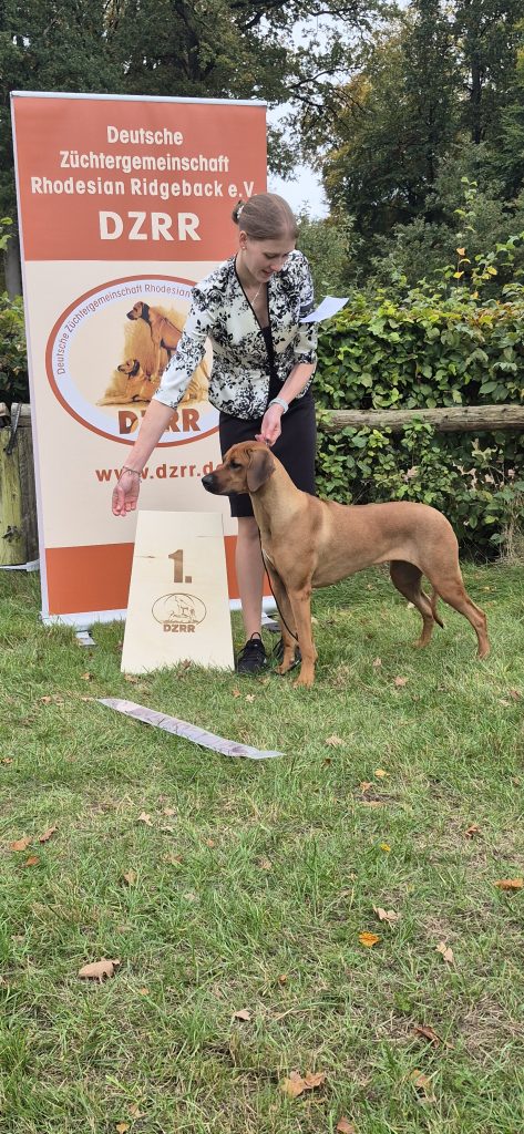 They did it again. Nur eine Woche nach ihrem ersten Platz in Rostock holen sich Sinikiwe Adhiambo Epic Ouafa Tsitsipaldi und ihre Handlerin Johanna Sieger den Sieg in der erstklassig besetzten Zwischenklasse bei der DZRR Nordic Spezial Show in Appel. Richter Gary Denver verfasste eine Beurteilung, die mich glücklich macht. Unter anderem bescheinigte er Ouafa einen sehr schönen, rassetypischen Kopf, gute Winkelung in der Hinterhand, ein freies Gangwerk und resümierte: schöne Hündin von guter Größe und Substanz. Mit dem vorzüglich, 1. Platz hat sie einen weiteren Punkt für den Deutschen Champion VDH, sowie für den Club-Champion der DZRR erhalten. So kann es weitergehen!