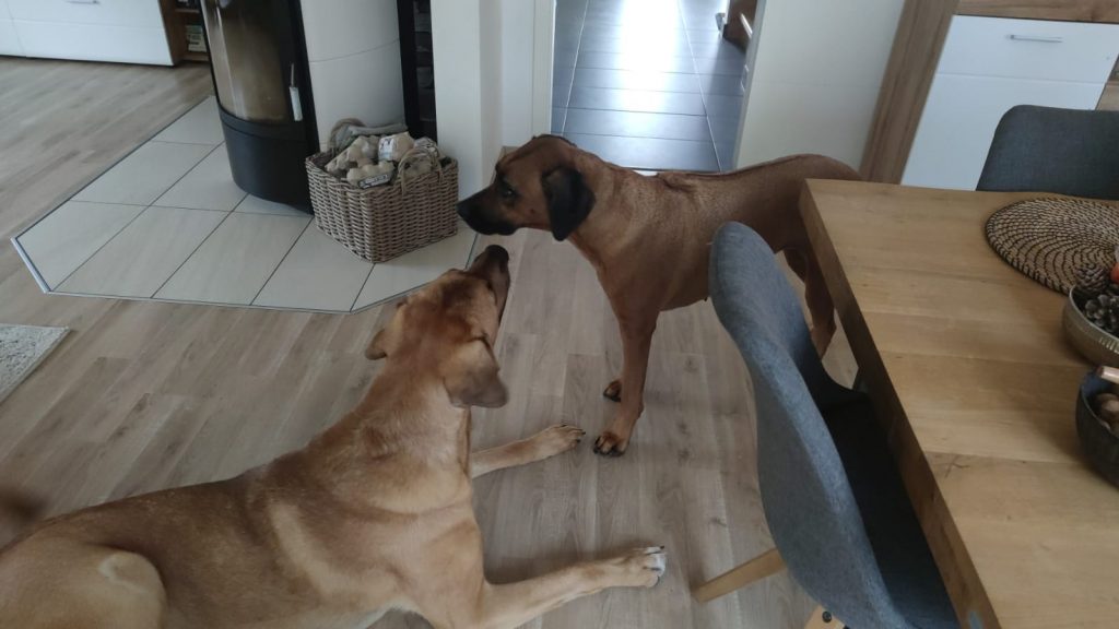 Während sich ihre Tochter Ouafa im Ring präsentierte, durfte Kahlua zwei Tage bei ihrem Angebeteten, dem Broholmer Deckrüden Jonte und dessen Sohn Bosse verbringen. Vielen Dank an Andreas und Jenny, die auf meine Zaubermaus aufgepasst haben.