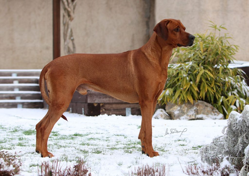 In ihr vereinigen sich väterlicherseits über die Kennel Karoskloof und Shangani afrikanische Linien. Bei ihrer Mama Senta ( Dtsch. Champion VDH, Bundessiegerin 2012) findet man im Pedigree unter anderem den legendären Besal Fatoka. Frieda ist Anwärterin für den internationalen Schönheits-Champion und den deutschen Champion VDH/Club.