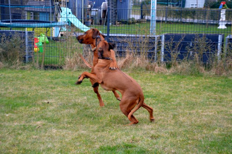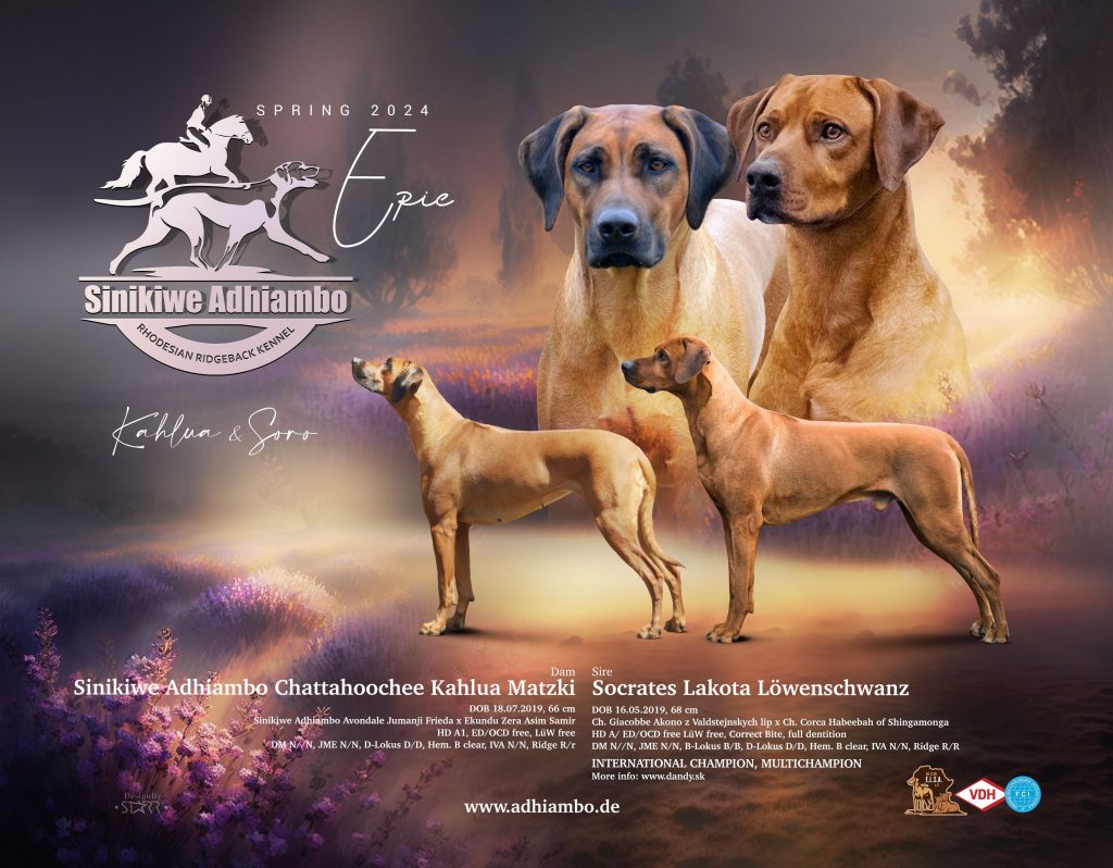 Wir wagen es ein zweites Mal: Nachdem der C-Wurf aus der Verpaarung von Frieda und Asim so zauberhafte, wesenfeste, verschmuste und bildhübsche Welpen gebracht hat, haben Asims Besitzerin Diana und ich uns für eine Wiederholungs-Verpaarung entschieden. Der D-Wurf soll mit Präfix Dyani heißen. Dyani stammt aus dem american origin und heißt „Reh“. Da Ridgebacks über einen mehr oder weniger großen Jagdtrieb verfügen, finde ich diesen Namen, den meine Tochter Helena ausgesucht hat, sehr passend und klangvoll.