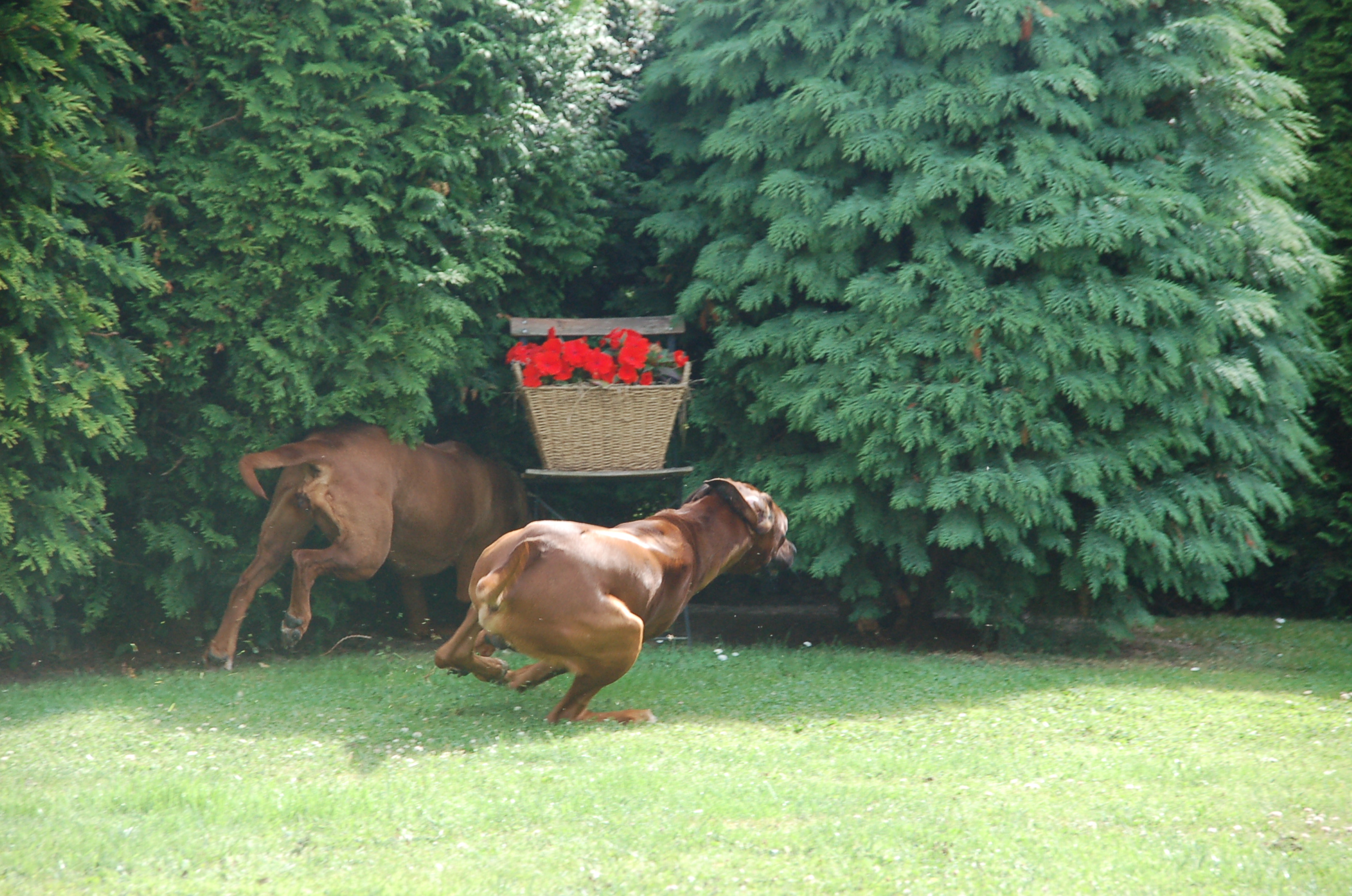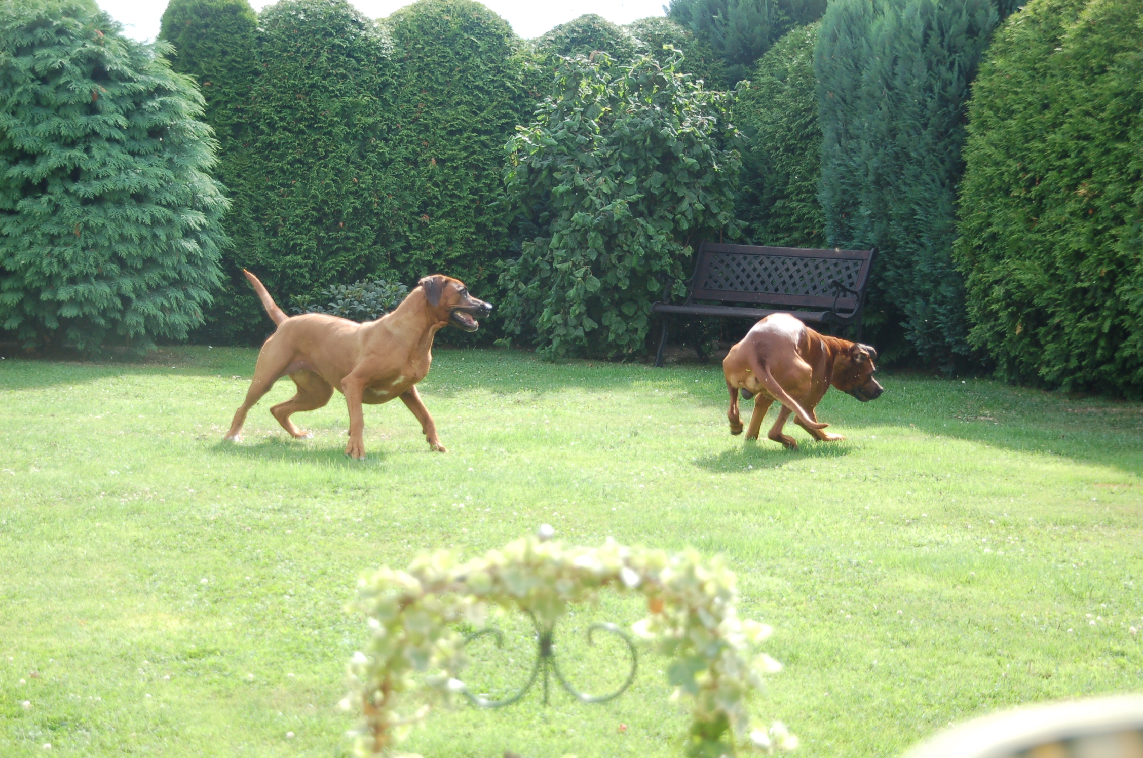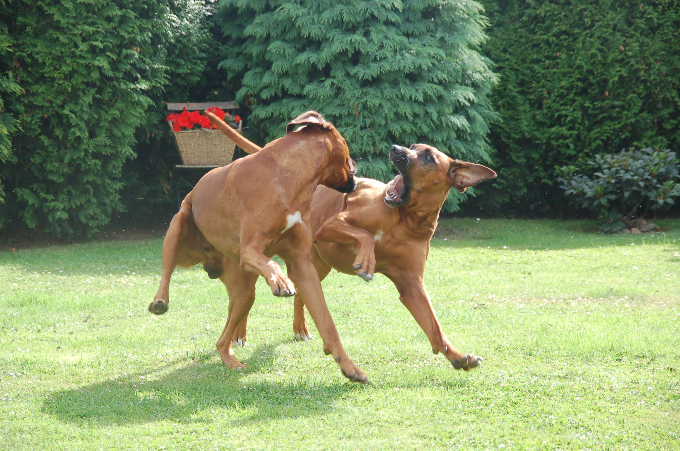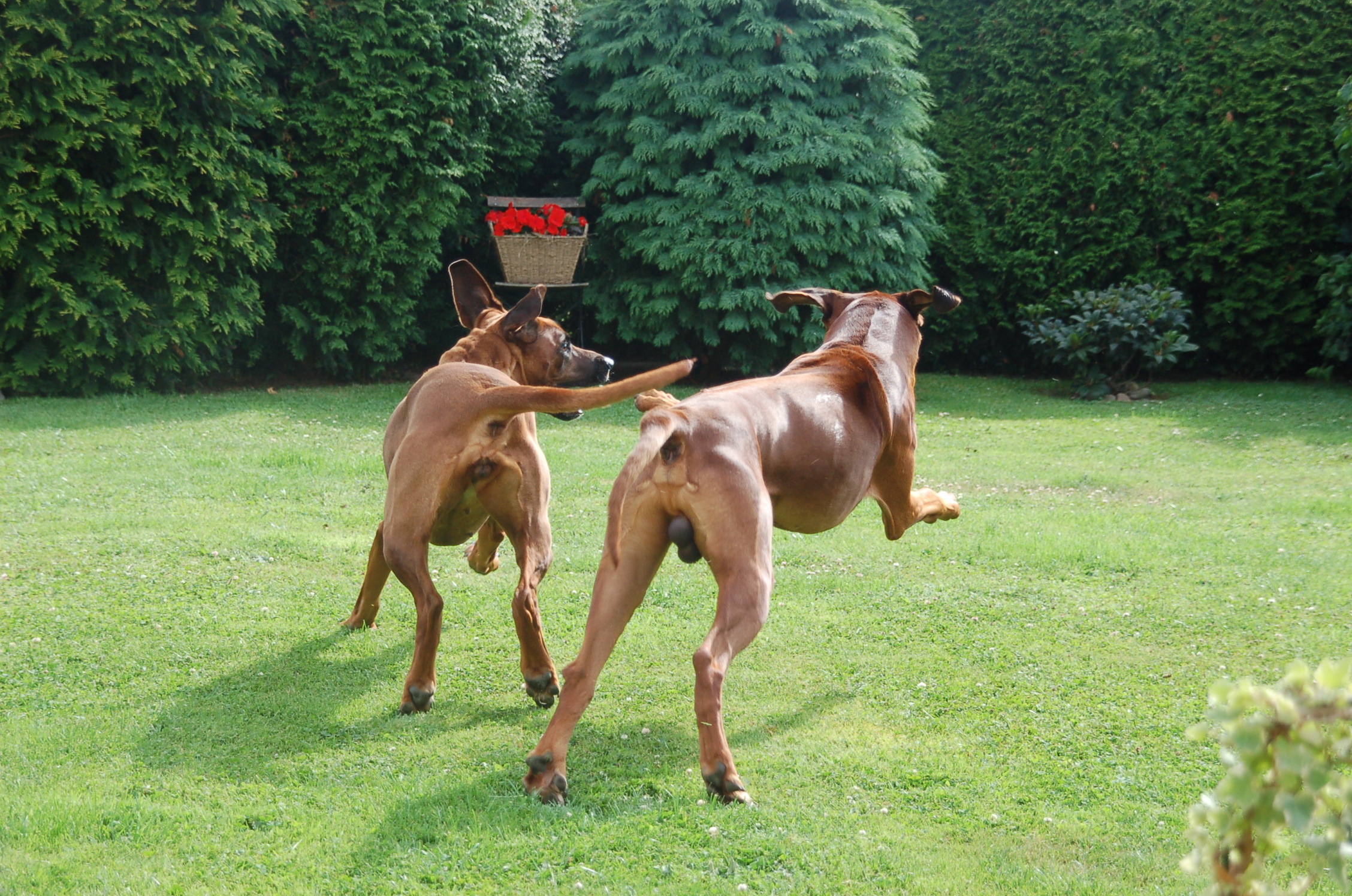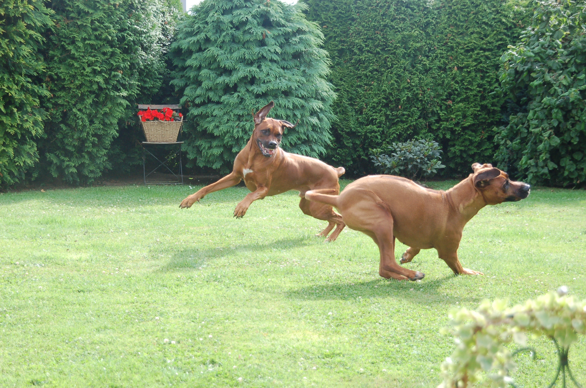 Wenn Adhiambo und Anga toben, heißt es in Deckung gehen und mit Freude das Treiben der beiden beobachten. Seht selbst, was für eine Energie unsere Ridgebacks dabei entwickeln.