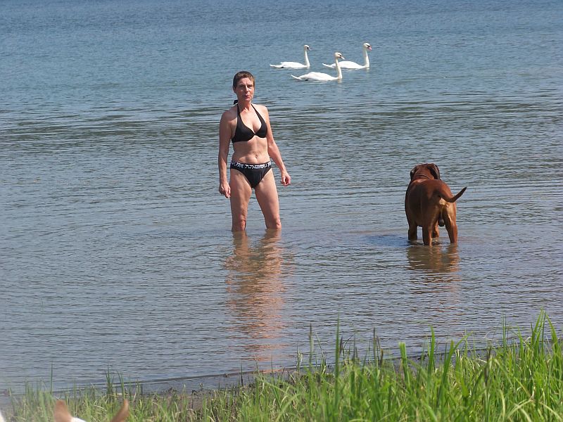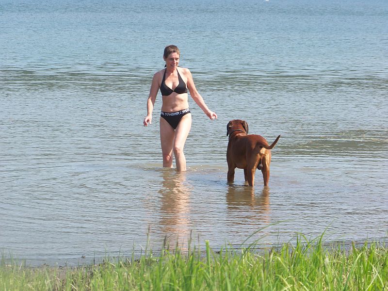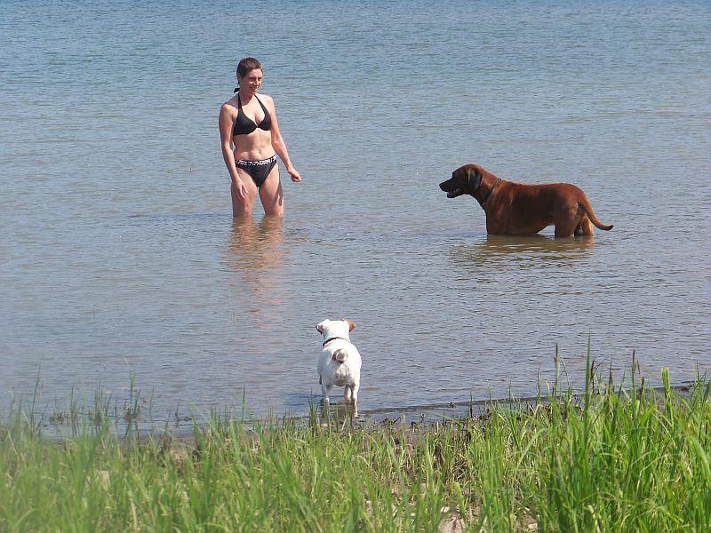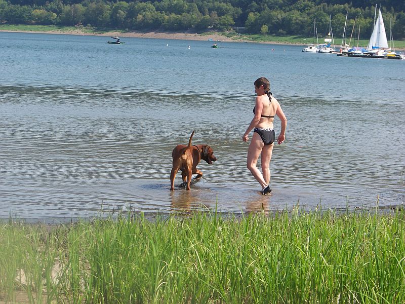 Antonia und ich haben den vermutlich letzten heißen Tag dieses Sommers genutzt und sind mit den Hunden an den Edersee gefahren. Dabei zeigte sich, dass Adhiambo, im Gegensatz zu unserer früheren Ridgebackhündin Emma, gar kein Wasserfrosch ist. Mit Mühe und Not hat ihn Antonia bis zum Hals ins Wasser locken können, aber schwimmen wollte er nicht.