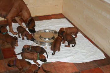 Im Kennel Bravo Topsecret (www.bravo-topsecret.de) ist ein Wurf gefallen: Adhiambos Mama Hannah hat ihre letzten Babys bekommen, bevor sie aus der Zucht geht. Sie hat sechs Rüden und fünf Mädchen zur Welt gebracht. Vater der Welpen ist Heshima ya Kimba Energy of Red. Genauso wie Hannah entstammt er der Karoskloof-Linie. Da er der alten Linie zuzurechnen ist und Hannah der jungen Linie, gibt es keine Inzucht. Interessant ist die Verbindung aber allemal, da hier wirklich zwei alte afrikanische Linien vereint wurden. Wer sich für einen Welpen interessiert, kann sich an Karen Rahardt, Tel: 02354/904150, wenden.