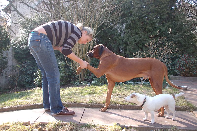 Die Vögel singen, Krokusse, Narzissen und Tulpen sprießen und endlich hat auch mal die Sonne geschienen. Helena war gleich schwer motiviert und hat mit den Hunden im Garten Kunststückchen geübt und danach das überflüssige Winterhaar aus dem Fell gebürstet.