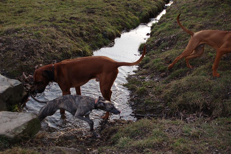 Nachmittags ging es dann mit Waziri und Sigrid zum Hundeauslaufgebiet am Rammelsberg. Der kleine Waziri hat sich vor Freude nicht mehr eingekriegt, sich mit allen dort herumlaufenden Hunden angefreundet und ist gerannt und hat gespielt, dass es eine wahre Freude war. Adhiambo findet ihn jetzt auch nicht mehr ganz so doof und ließ ihn sogar mitspielen. Als Waziri dann wieder weg musste, saß er in Sigrids Auto und heulte wie ein Kleinkind. So süß!!!