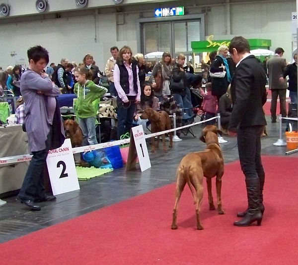 Ganz genial war, dass sich die Richterin die Zeit nahm, der Siegerin Melanie Häupl und mir mitzuteilen, wie sie zu ihrer Entscheidung kam. Sie fand beide Hündinnen sehr schön, entschied sich aber, Tashun Allstar Hazel auf den ersten Platz zu setzen, weil sie schon mehr Vorbrust und Substanz als Senta hat. Von hier aus nochmal Glückwunsch an Melanie Häupl und vielen herzlichen Dank an Frau Hammerschmid.