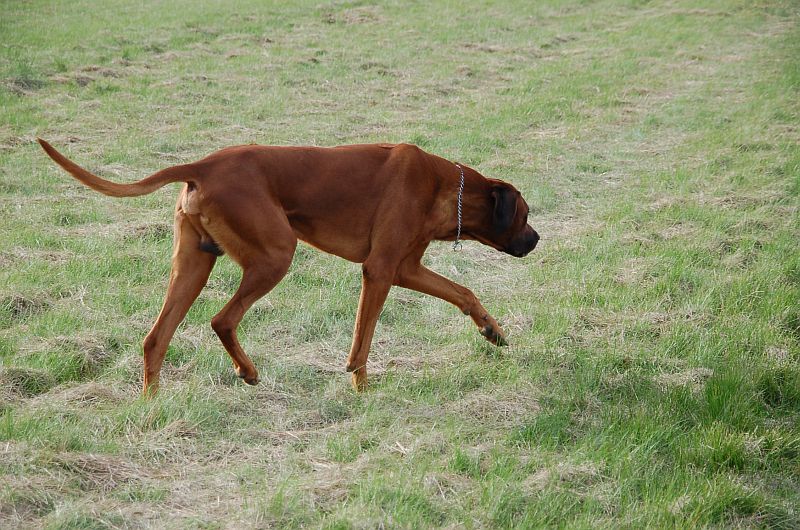 „7 Monate alte Hündin, korrekter Kopfschnitt mit typvollem femininen Ausdruck, passende Augenfarbe, die Hündin ist zur Zeit etwas lang im Format, schöne Winkelungen in VH und HH, schöne geschlossene Pfoten, das Brustvolumen muss sich noch entwickeln, freier fließender Bewegungsablauf“