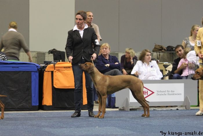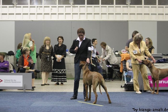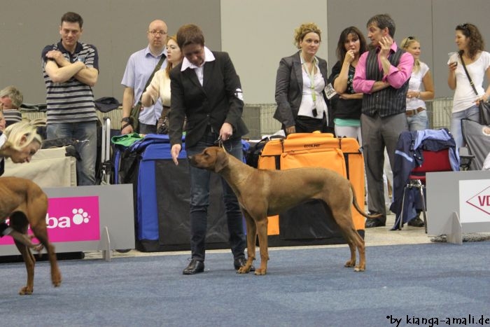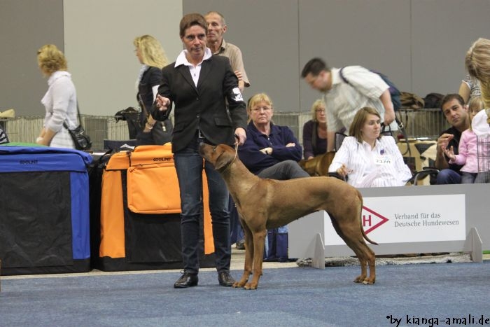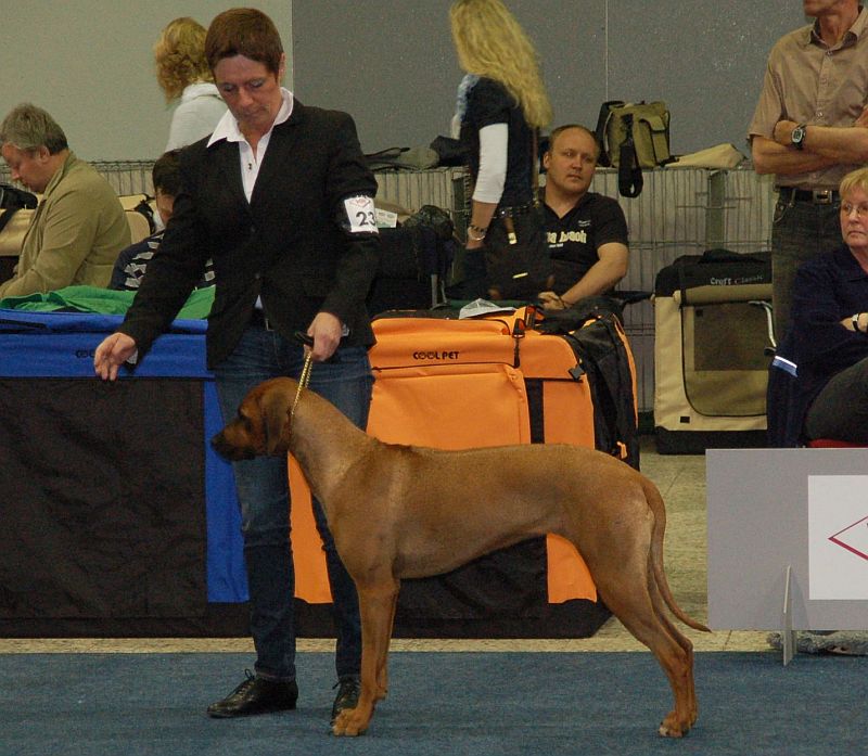 Hier noch der schöne Richterbericht, den Senta bekommen hat: 14 Monate alte insgesamt harmonisch aufgebaute Hündin, ansprechender Kopf, kräftiger trockener Hals, leicht ansteigende Rückenlinie, gute Brusttiefe und Vorbrust, korrekte Winkelungen der Vorhand und Hinterhand, noch sehr jugendlicher Bewegungsablaug mit leicht ansteigender Rückenlinie, angenehmes Verhalten.