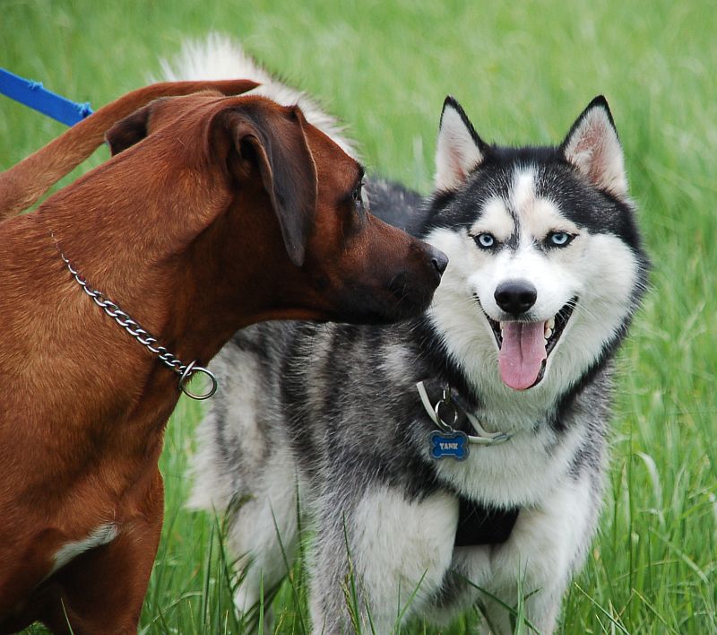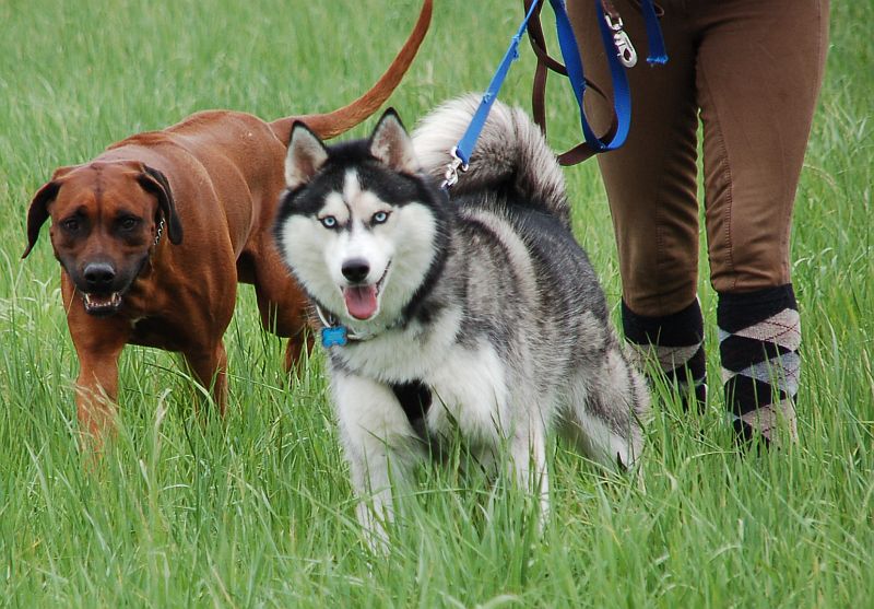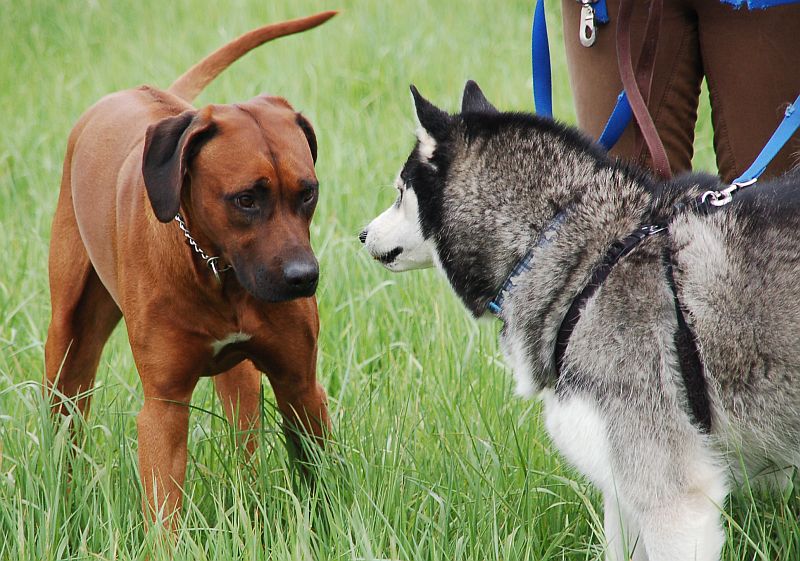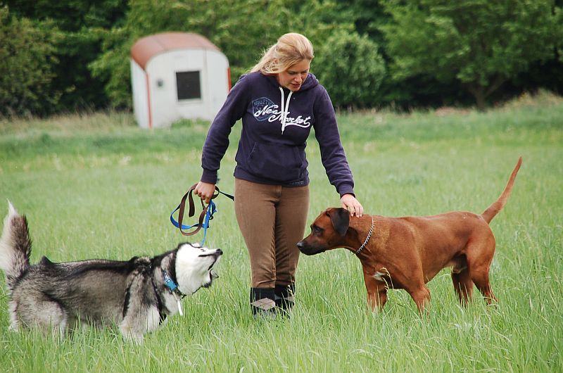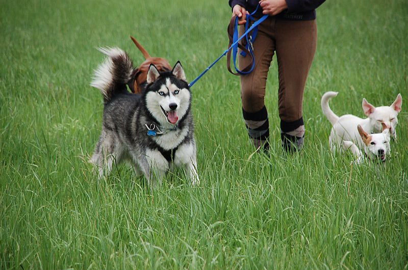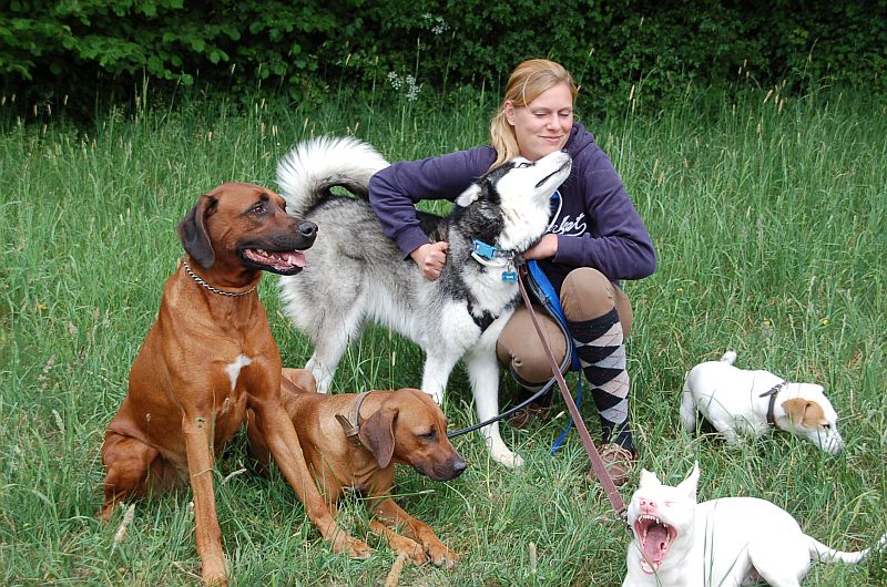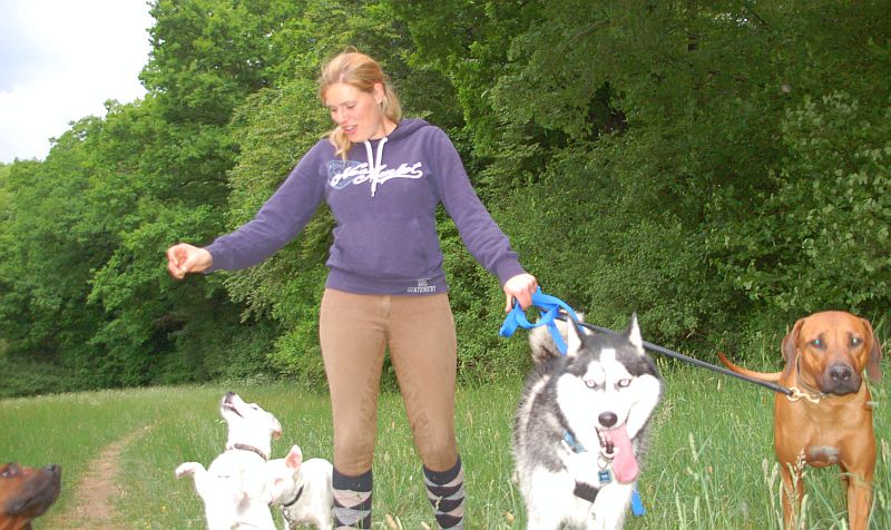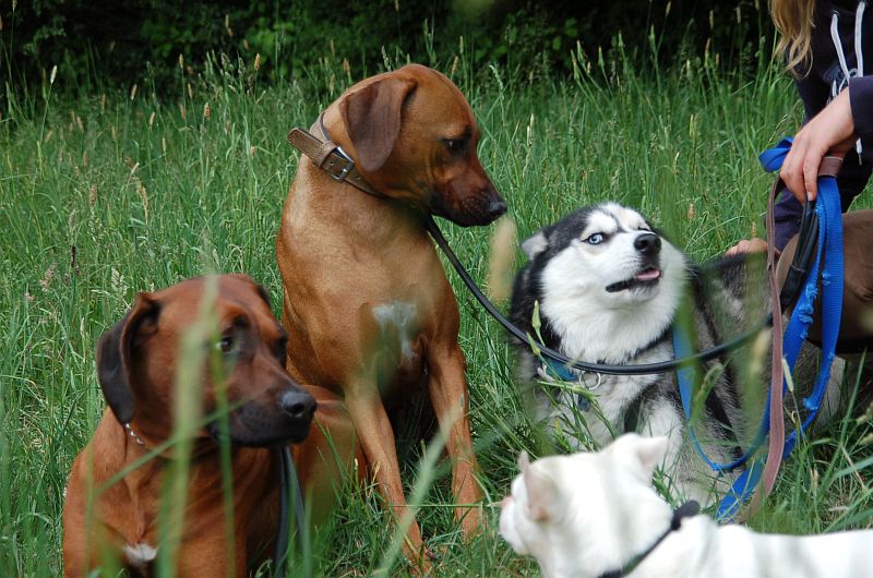 Helena hat zur Zeit den Husky-Rüden Tankzu Besuch. Er verbringt drei Wochen Urlaub bei ihr. Wir haben am Wochenende den Versuch gestartet und sind mit unseren fünf Hunden spazieren gegangen. Adhiambo und Tank haben sich ausgiebig beschnuppert und dann beschlossen, dass sie sich gegenseitig okay finden. Wir haben einen herrlichen Spaziergang durch den Caldener Forst gemacht, Chickie hat die ganze Zeit Clown gespielt, weil sie dem neuen Rudelmitglied unsere Aufmerksamkeit abspenstig machen wollte, während Senta den hübschen Tank einfach vollkommen ignorierte. Sie ist wirklich ein richtiger Rassist :-).