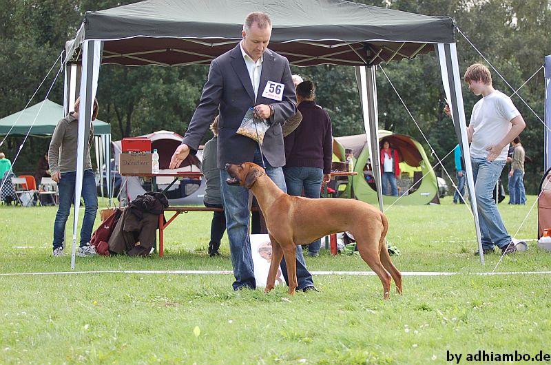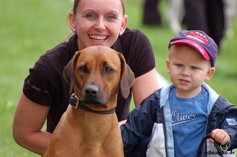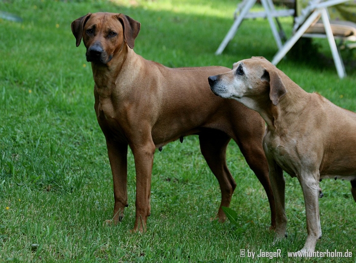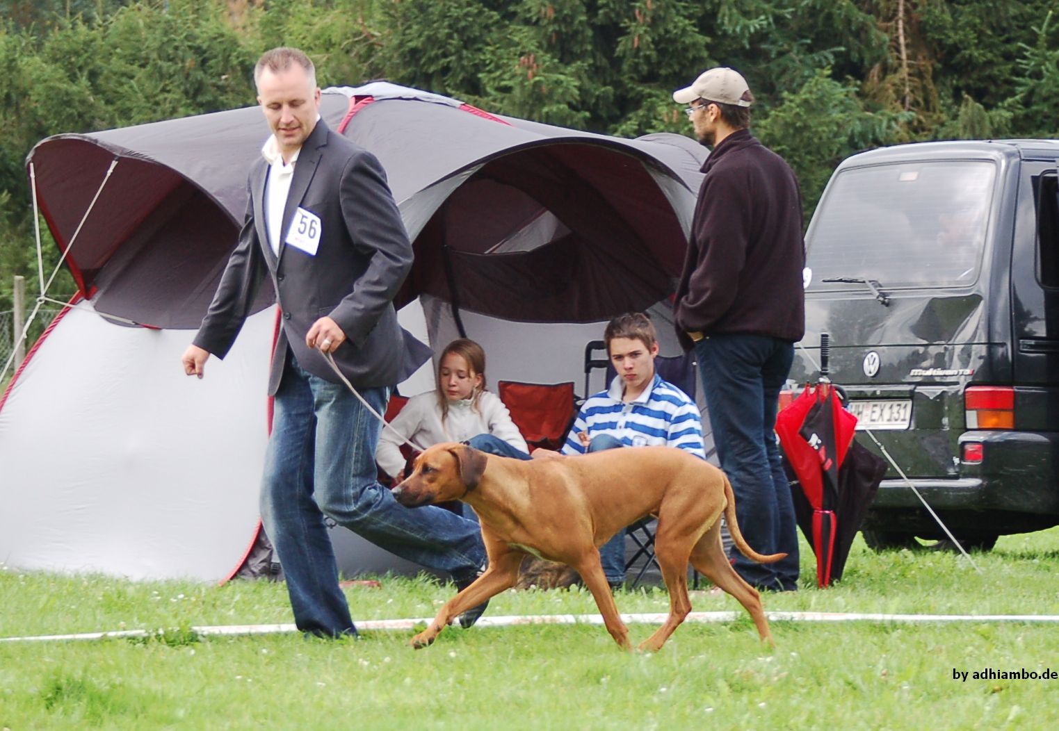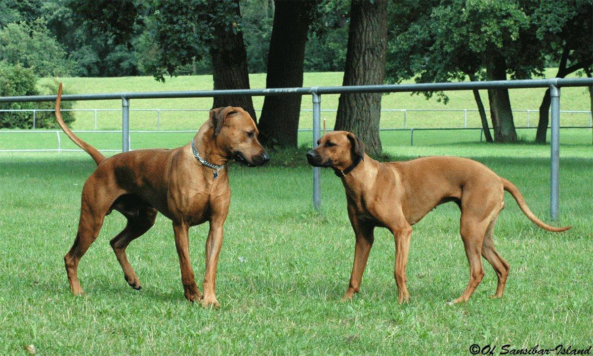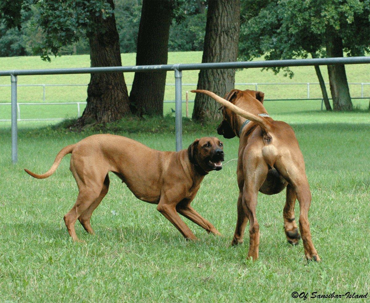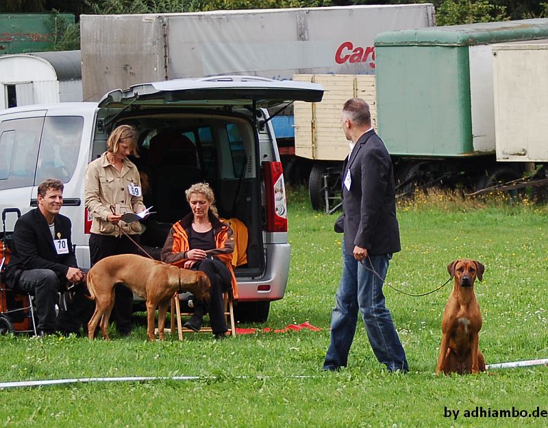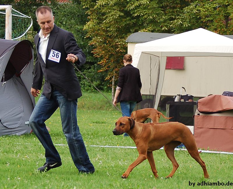Adhiambo wird demnächst seinen ersten Deckakt haben. Die Hündin ist Zungwini Ife aus dem Kennel der DZRR-Hauptzuchtwartin Karin Zühlke. Nicht zu Unrecht ist die erfahrene Züchterin auf die Langlebigkeit und Gesundheit ihrer Nachzucht stolz. So lebte bis vor kurzem neben Ife auch noch die 14 1/2 jährige Beauty bei Karin Zühlke.