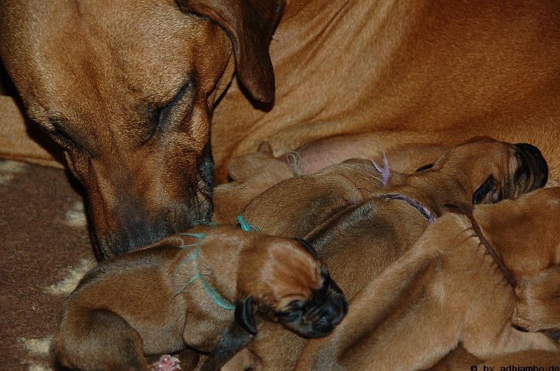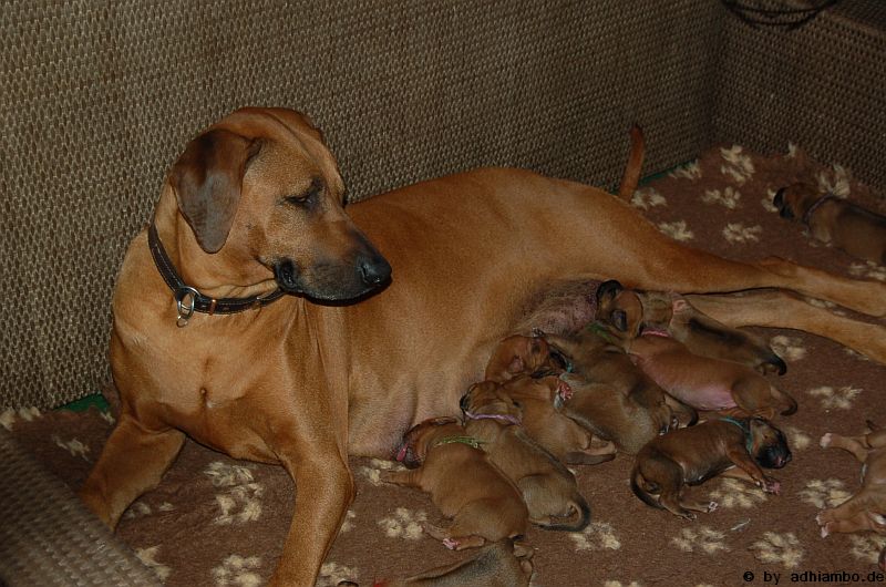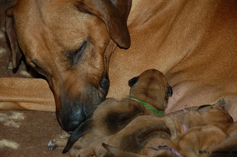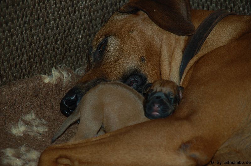 Ich habe auch noch Adhiambos Mutter besucht. Danke Du süße Hanna für diesen Traumridgeback, dem Du vor sechs Jahren das Leben geschenkt hast. Er bereichert jeden Tag unser Leben. Ohne Dich gäbe es ihn und dieses elffache Wunder, das vor drei Tagen geboren wurde, nicht.