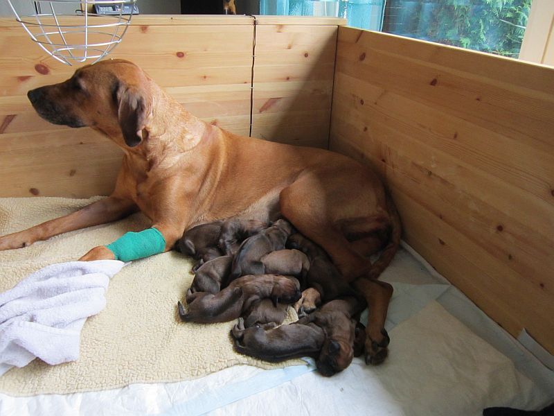 Ashiras and Adhiambos puppies are born this morning. Six little boys and four bitches are very lively and thursty :-). All have good ridges and crowns. We are very happy and are saying thank you to Ashira for these wonderful babys.