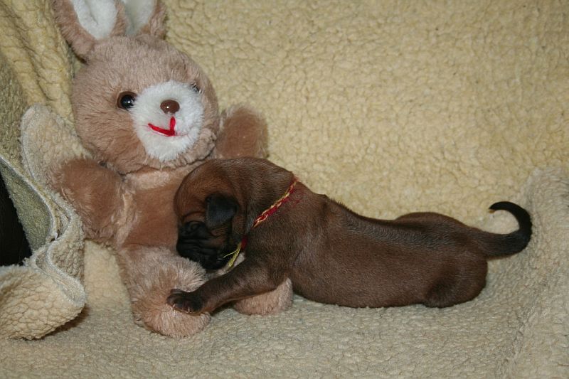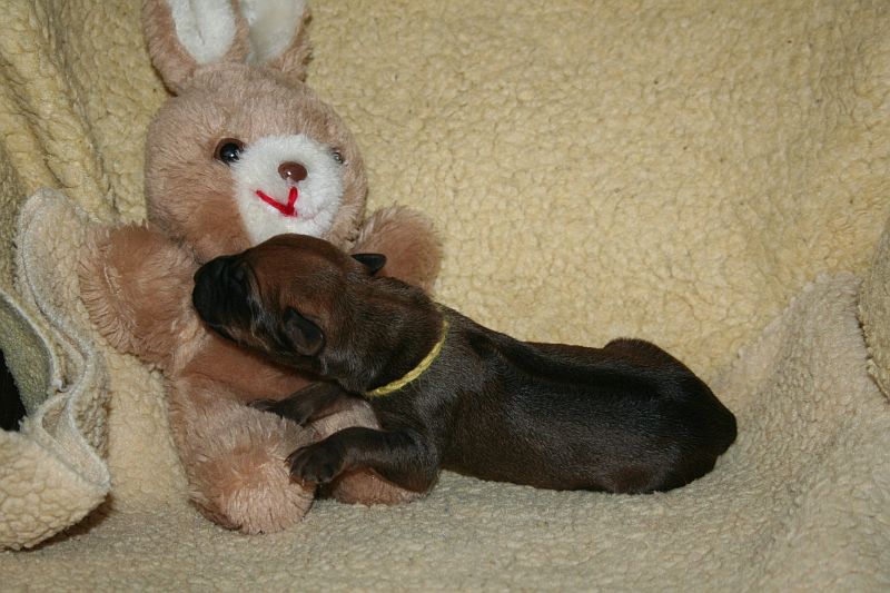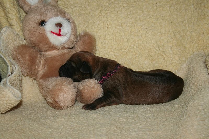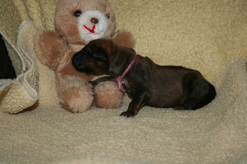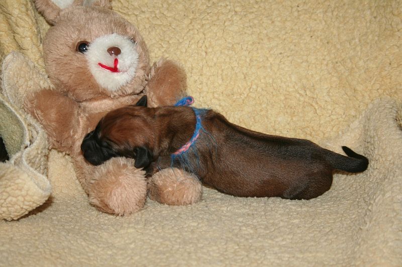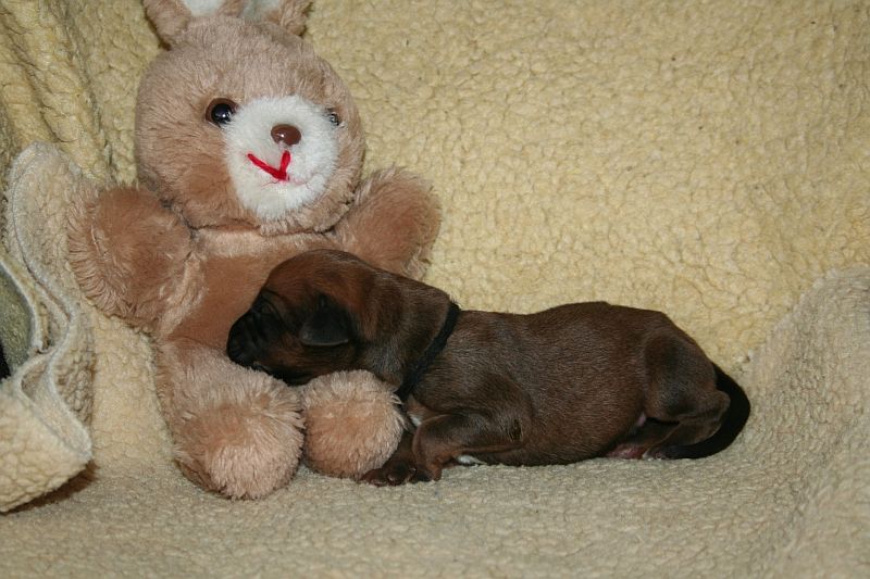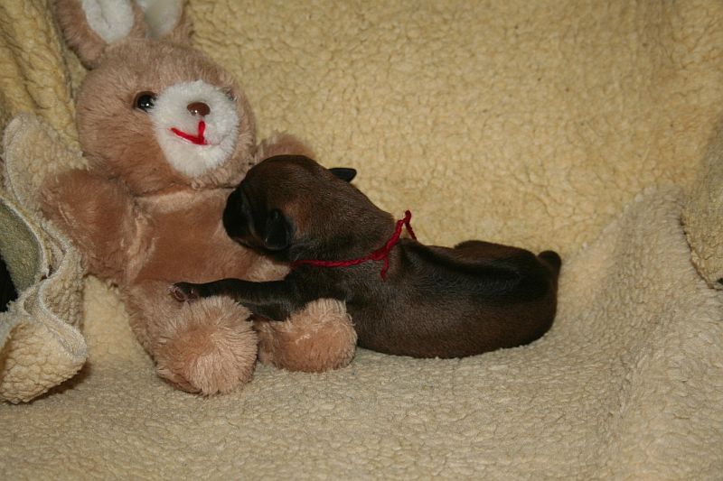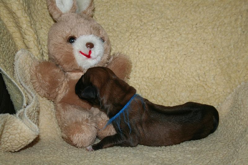 So, hier sind nun alle Welpen einzeln zu sehen. Sie sind laut Sylvia putzmunter, kriechen schon fröhlich in der Wurfkiste herum und haben vor allem eins – Einen Mordshunger. Bei der Geburt haben sie alle zwischen 400 und 500 Gramm gewogen und haben heute schon zugenommen.