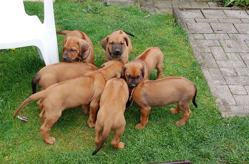 Ich war vergangene Woche bei Heinz und Sylvia Leder und den Kindern von Adhiambo und Ashira zu Besuch in Lübeck-Stockelsdorf. Die neun kleinen Racker sind jetzt gut sechs Wochen alt und machen sich prächtig. Neugierig und voller Elan wird Tag um Tag der Garten erkundet, Spielchen gemacht und kräftig gefuttert. Besuch begrüßen die Kleinen neugierig und ohne jegliche Scheu. Ich bin hin und weg, mit welcher Ausdauer, Hingabe und Liebe, aber auch Konsequenz Heinz und Sylvia Leder die Welpen betreuen.