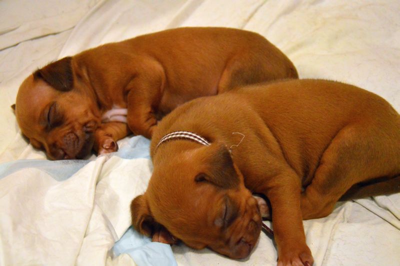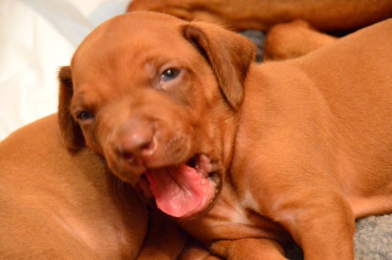 Unsere kleinen Avondales sind jetzt in der dritten Woche und werden immer kregeler. Auf stämmigen Beinchen erkunden sie noch etwas wackelig die Wurfkiste und krabbeln fröhlich über ihre Geschwister, wenn die im Weg liegen. Alle nehmen kräftig zu und Senta muss eifrig Milch produzieren, um die hungrigen Mäulchen satt zu bekommen. Es wird jetzt auch schon erkundet, ob man an unseren Fingern kauen kann. Und überhaupt kommen die Kleinen jetzt zu uns gekrabbelt und suchen den Kontakt.