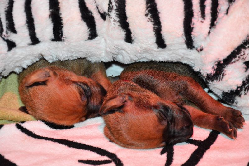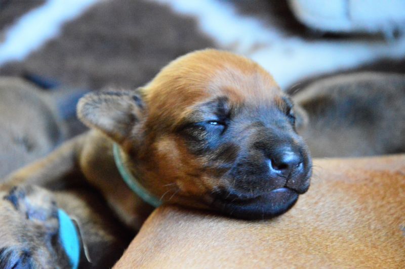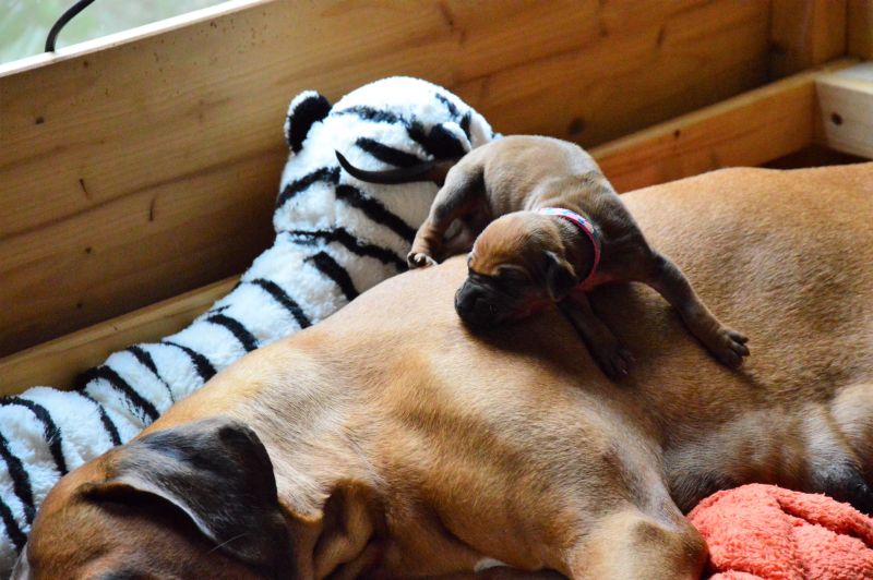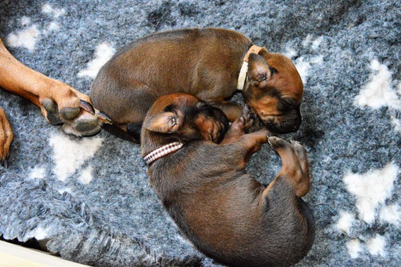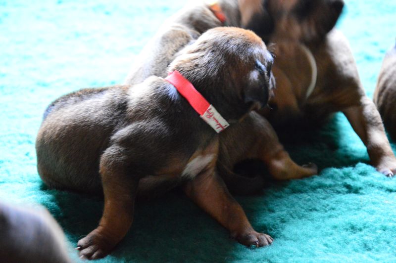 Unsere Kleinen sind jetzt gut zwei Wochen alt. Es wird schon munter durch die Wurfkiste gelaufen, ein bisschen gekämpft und auch gebellt und geknurrt. Noch etwas mehr als eine Woche bleiben die Kleinen in der Kiste, dann wird der Radius erweitert und auch die Terrasse erobert.