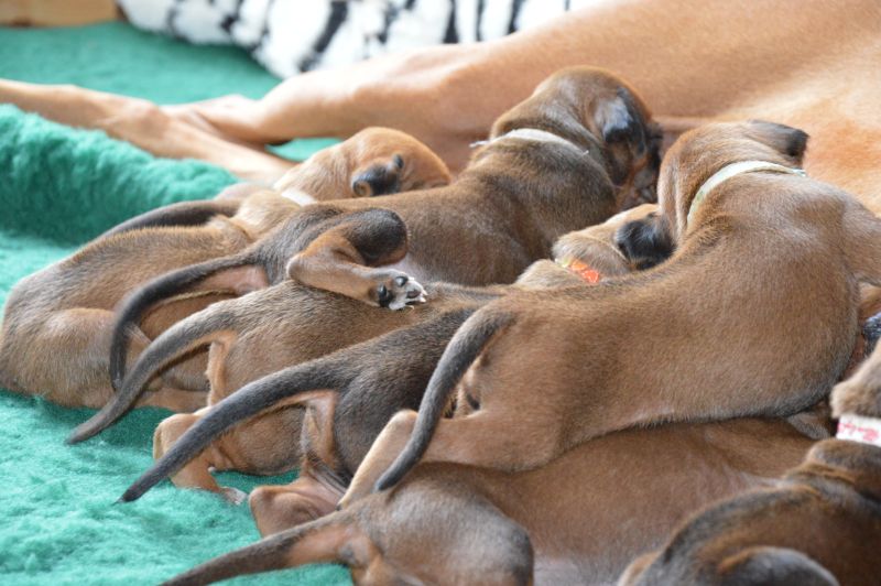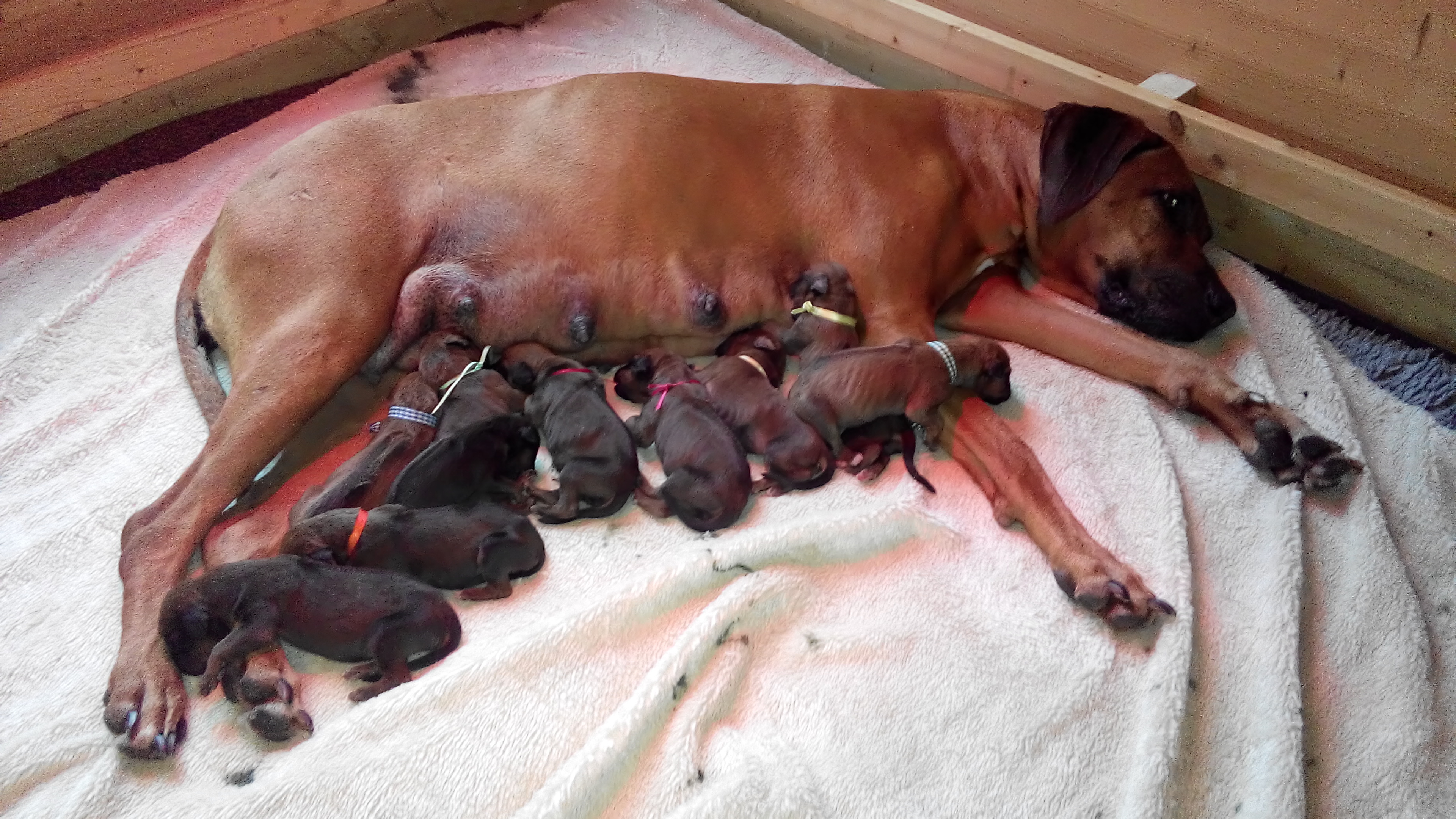 12 kleine Beauregards sind am Wochenende geboren worden. Leider haben zwei Mädchen und ein Junge nicht überlebt. Jetzt bevölkern sieben Hündinnen und zwei Rüden die Wurfkiste und halten Mama Senta auf Trab. Die hat die Geburt toll gemeistert und behütet und versorgt ihre Kinder vorbildlich. Ich bin sooo stolz auf sie <3