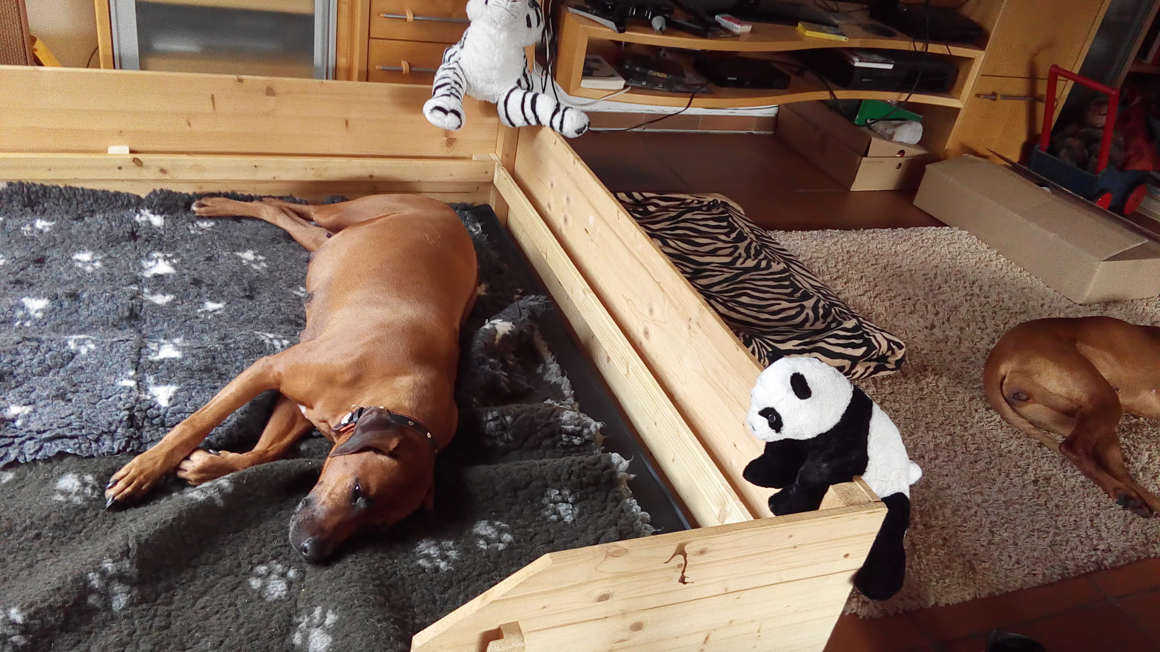 60 Tage lang ist unsere Sentamaus nun tragend. Die athletische Figur ist einem runden Bäuchlein gewichen, in dem munter die Welpen herumtoben. Doch die Muskulatur an Popo und Schultern zeigt, dass Senta topfit ist. Am Freitag begleitete sie Antonia und Sherlock noch auf einer Schrittrunde durchs Gelände.Jetzt ist die Wurfbox aufgebaut und wir lassen es mit kleinen Spaziergängen ruhiger angehen.