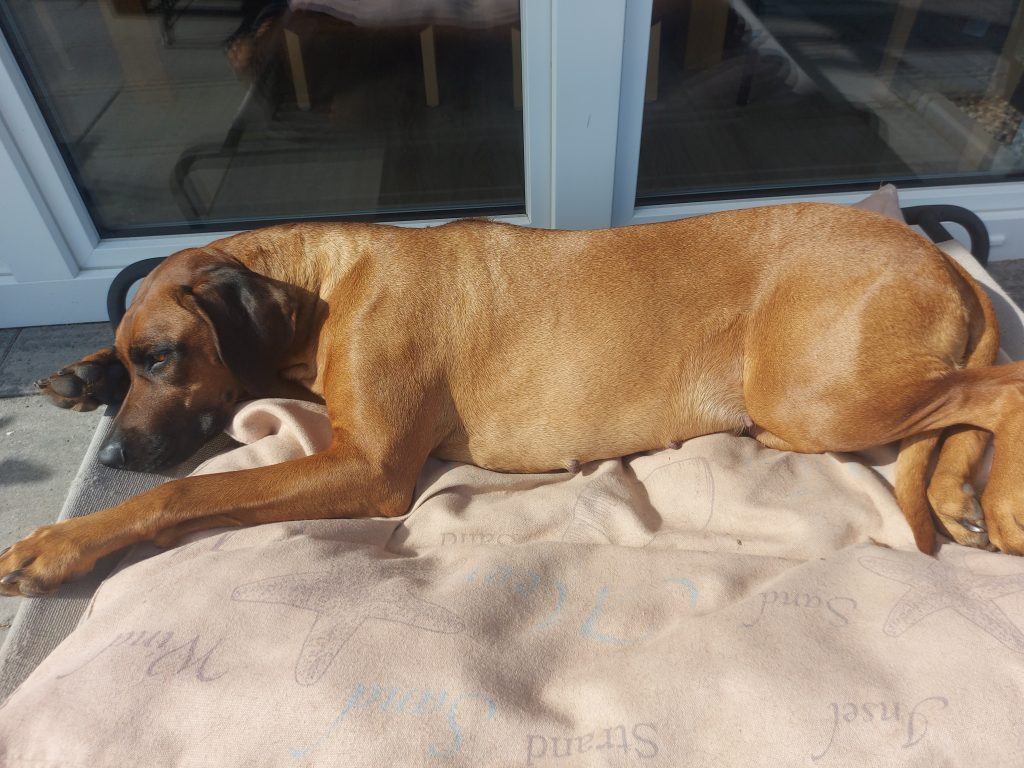 Am vergangenen Freitag, 3. Mai, hat Kahlua ihr großes Geheimnis gelüftet und 13 Welpen das Leben geschenkt. Und wie sie so ist – „was lacostet die Welt? Das spielt keine Rollex“ – ist bei ihr mal wieder nichts normal. Mit 12 Hündinnen und einem „Quotenrüden“ toppt sie schon die herkömmliche Geschlechteraufteilung. Dass bei der Anzahl der Welpen fünf Mädchen über 500 Gramm, sieben weit über 400 Gramm und nur ein Winzling mit 282 Gramm Geburtsgewichten dabei sind, ist schon außergewöhnlich. Mein armes Mädchen hatte ordentlich zu schleppen!