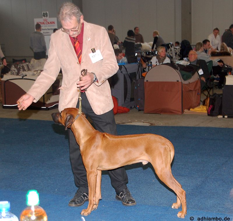 Auch in 2013 war sie sehr erfolgreich. Wir haben aus familientechnischen Gründen nur sehr wenige Ausstellungen besuchen können. Auf der Europasiegerausstellung im Frühjahr siegte sie in der Championklasse, ebenso bei der Spezialrassehundeausstellung in Recklinghausen, jeweils mit V1. Bei der Bundessiegerausstellung im Herbst erhielt sie in der Championklasse ein V2.
